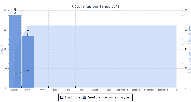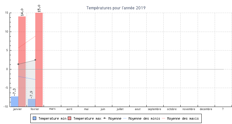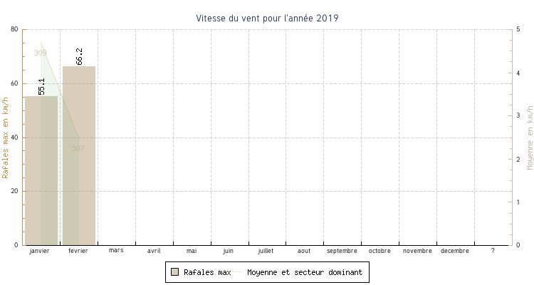 | fevrier | -7.9 °C | -2.7 °C | 15.0 °C | 8.8 °C | 2.5 °C | 2.5 km/h | 66.2 km/h | 307 |